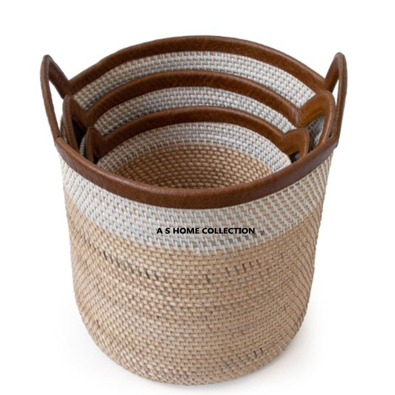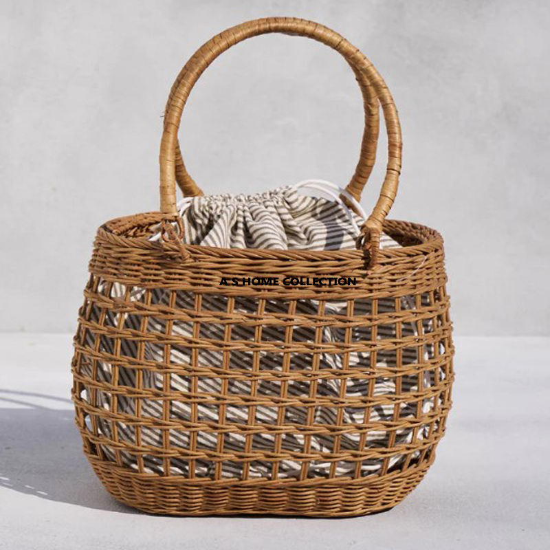 Multi Color Hand Woven Rattan Scalloped Round Wicker Baskets Wicker Storage Basket