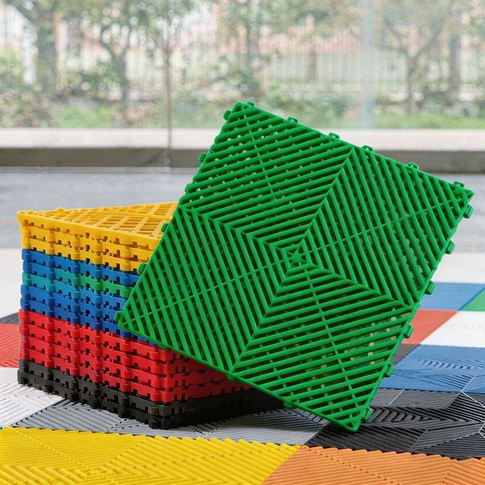 Multi-Color Interlocking PP Polypropylene Floor Tiles Anti-Slip Car Wash Garage Floor Mats Industrial Plastic Grate Panels for D
