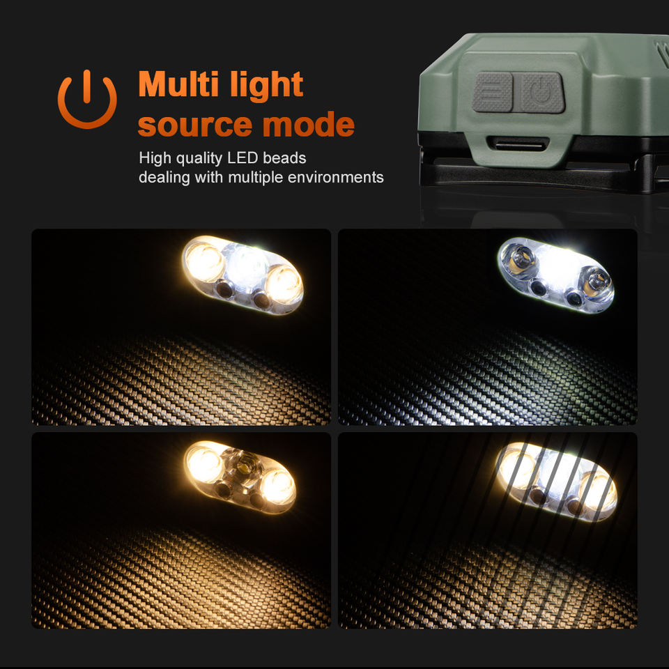 Multi Color Light Source Wave Sensor 1000 Lumen Led Beads Type C Rechargeable Lightweight Portable Outdoor Security Led Headlamp