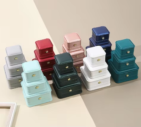 Multi-Color PU Leather Jewelry Box with Velvet Lining Custom Logo Ring Pendant Bracelet Bangle Storage Box Wholesale