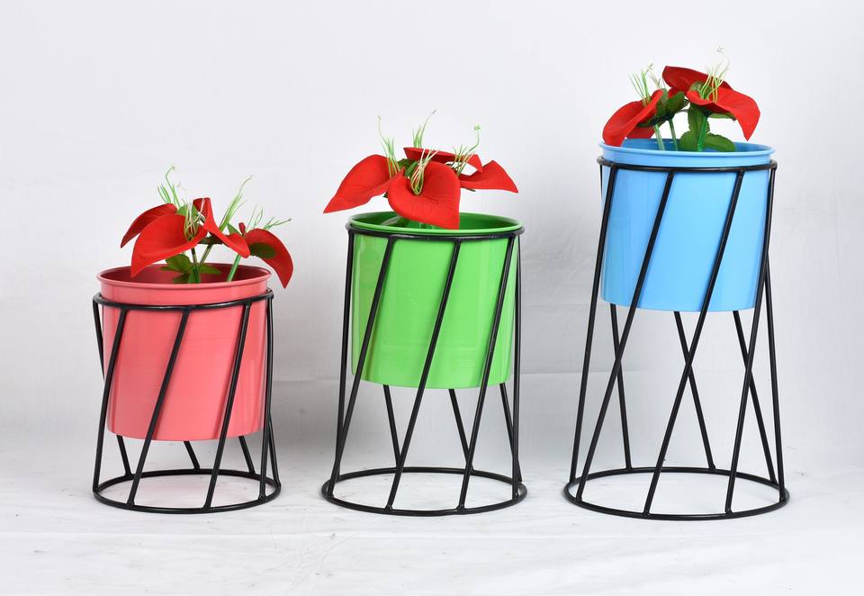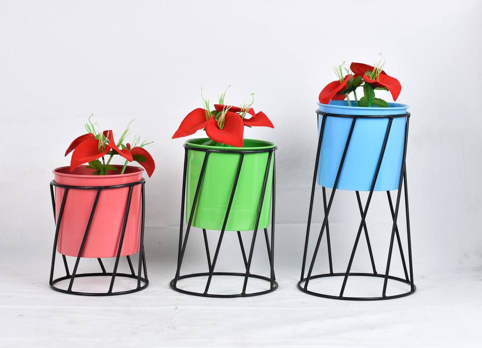 Multi Color Set of 3 Iron Planters Gold Farmhouse Style Eco-Friendly Durable Lightweight Indoor Home Garden Supplies Wholesale