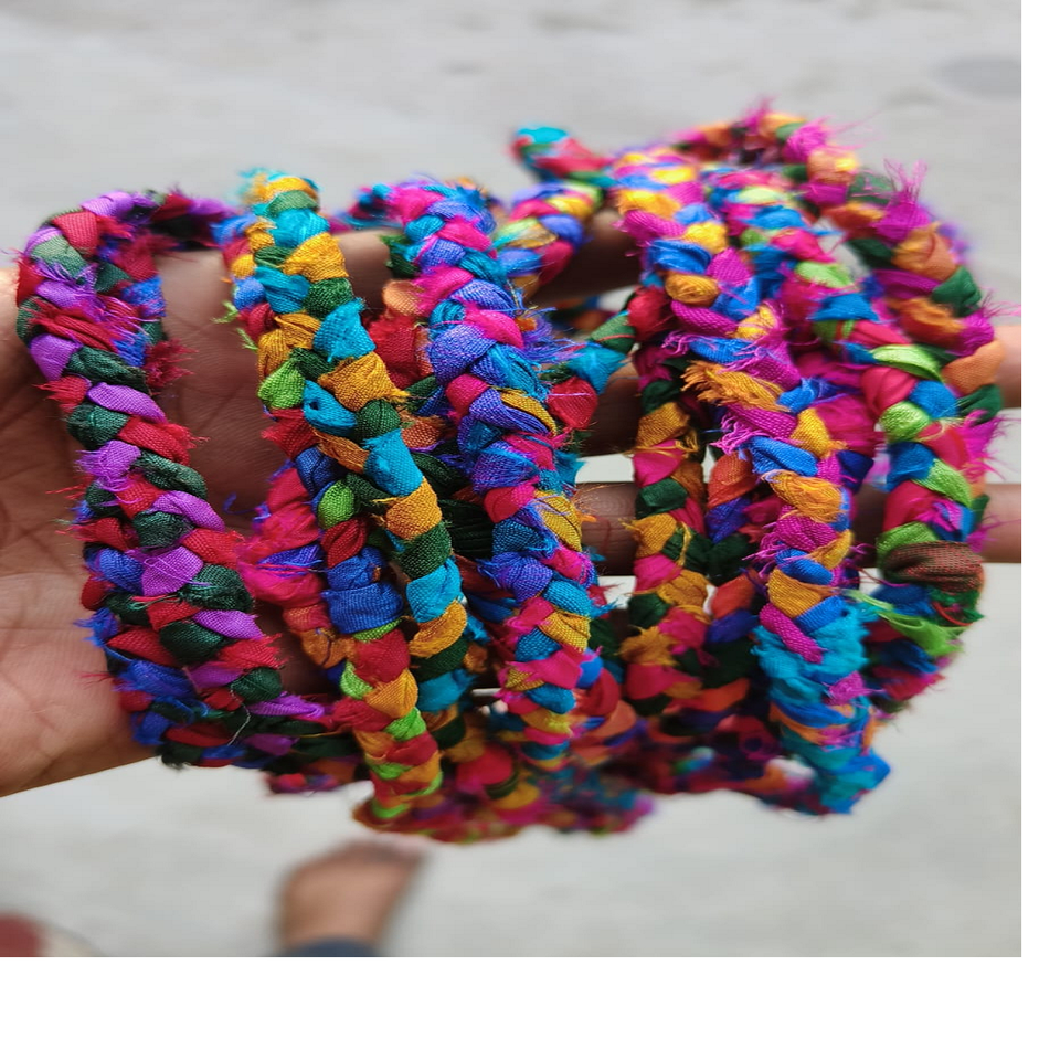 Multi Colored Sari Silk Braided Ribbons Made From Recycled Sari Silk Fabric and Ribbons Ideal for Resale Suitable for Jewelry