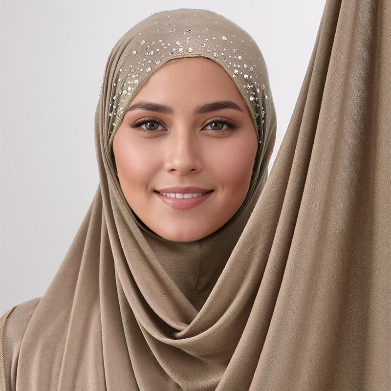 Multi Colors Jacquard Hijab Jersey Cotton Wholesale Arab Middle East Diamond Cover Headscarf Muslim Lady Ombre Hijab Jersey