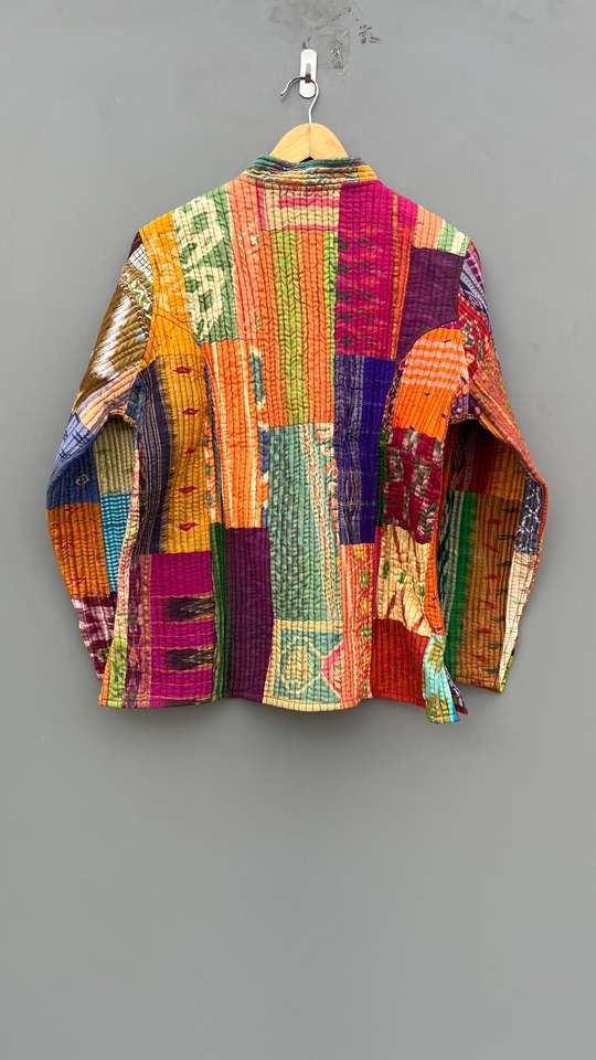 Multi-Colour Handmade Ethnic Printed Designer Jacket Vintage Kantha Jackets Premium Silk Quilted Kantha Coats at Wholesale Price