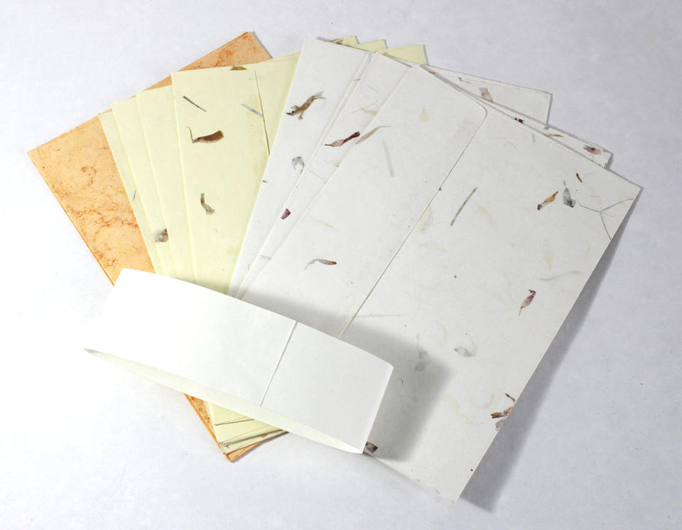 Multi-Coloured Flower Petals Peel Seal Glue Paper Recycled Handmade Cotton Wood Free Acid Free Stationery Set with Envelopes