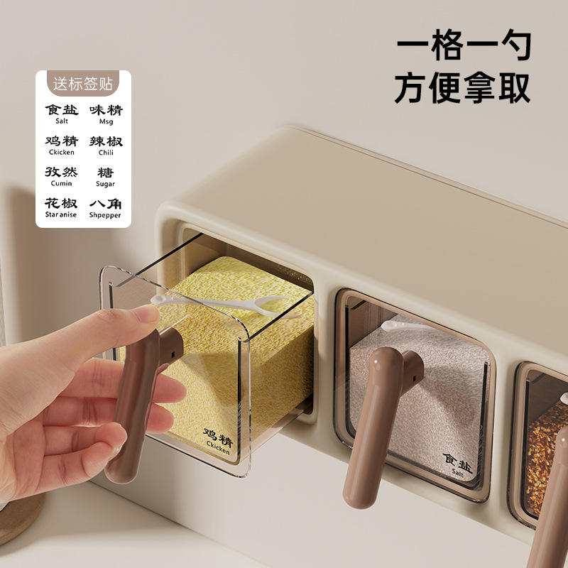 Multi Compartment Spice Container Wall Mounted Moisture Proof Plastic Salt And Msg Jar For Kitchen Storage L Size