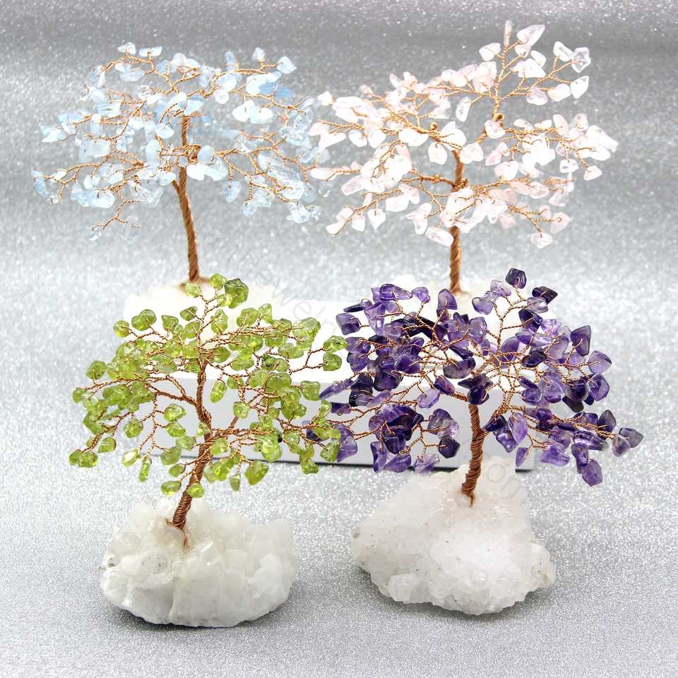 Multi Crystal Tree Gemstone Cluster Wire Sculpture Tree Of Life Crystal Bonsai Decor Feng Shui Citrine Amethyst Rose Quartz