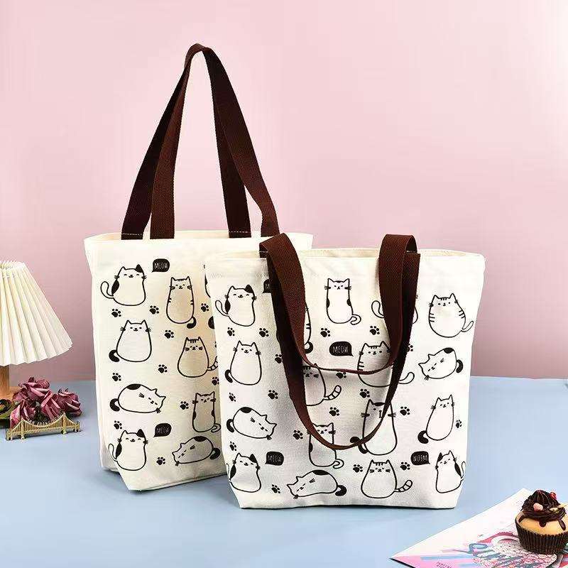 Multi Designs Water Resistant Tote Bag Creative Cartoon Print Canvas Handhold Bag DIY Large Capacity Handbag Gift Shopping