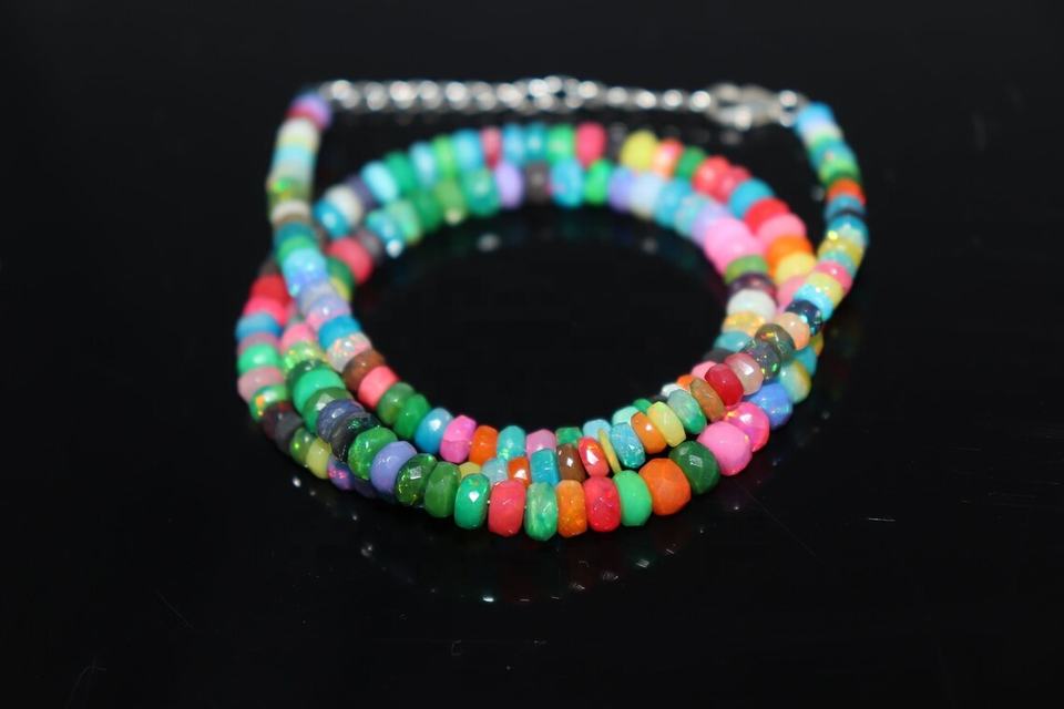 Multi Fire Disco Opal Faceted Rondelle Beads 3-5mm Fire Opal Bead Rainbow Beads Necklace