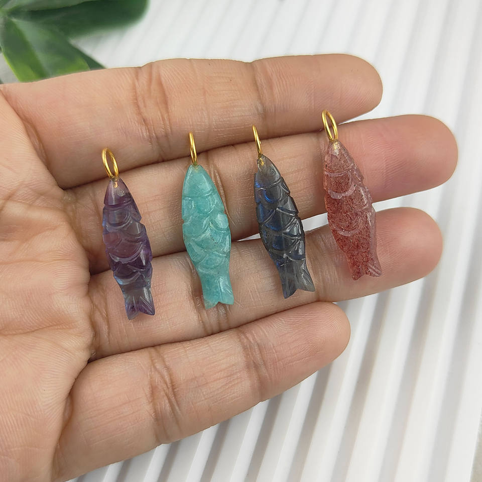 Multi Fluorite Fish Carving Pendant Charms Handmade Carving Charms For Jewelry Bracelets Wholesale Available