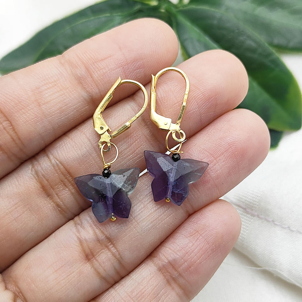Multi Fluorite Gemstone Butterfly Carved Earrings Sterling Silver Lever Back Dangle Earrings for Women Handmade Jewelry Gifts