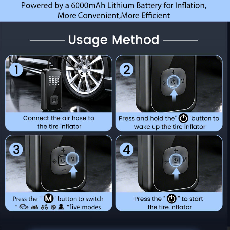 Tire Inflator Emergency Air Compressor for Car Motorcycle Bicycle Use