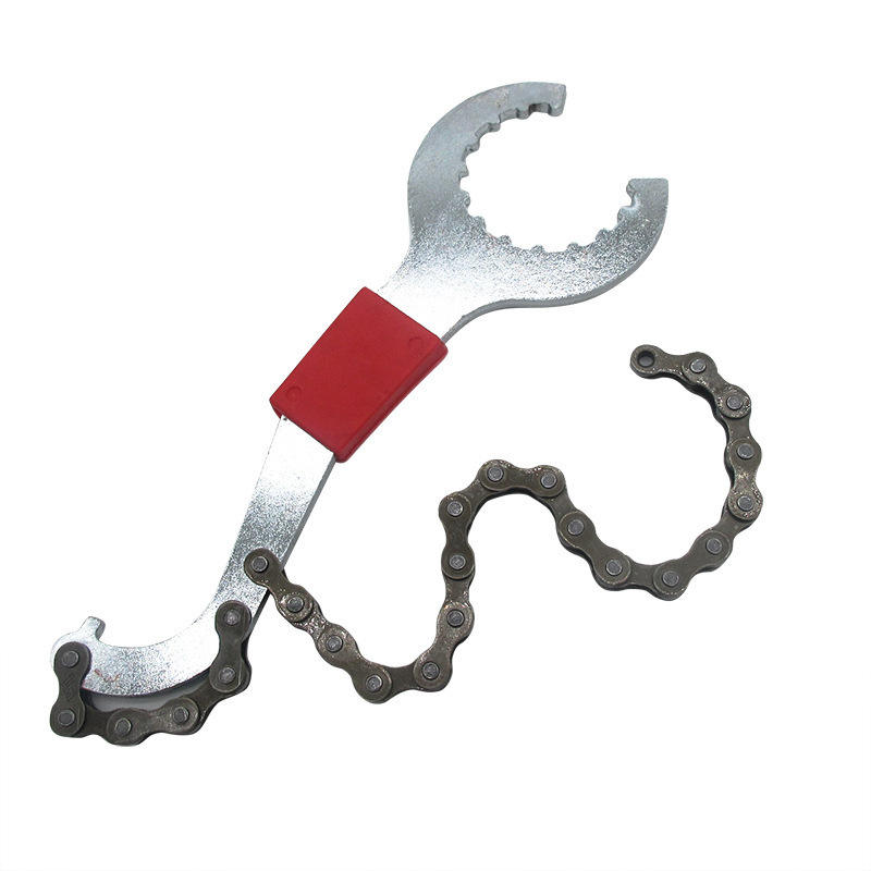 Multi Function Bicycle Bottom Bracket Tool Steel Chain Wrench With Red Handle For Bike Repair And Maintenance