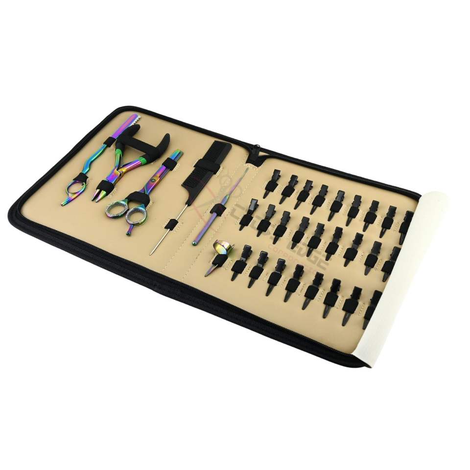 Multi Function Hair Extension Kit Crimping Plier Hair Pulling Hook Parting Finger Comb Sectioning Clips Thinning Scissor Razor