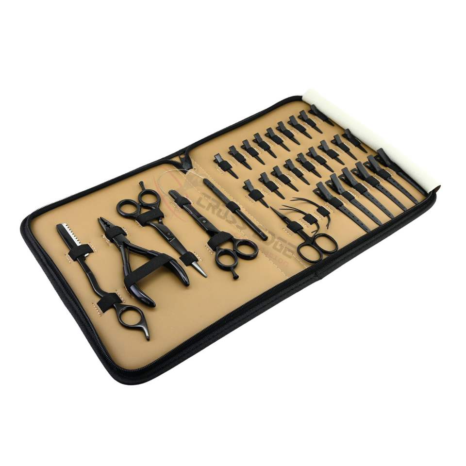 Multi Function Hair Extension Tool Kit with Crimping Plier Thread Mini Cutter Long Clips Thinning Razor Barber Scissor