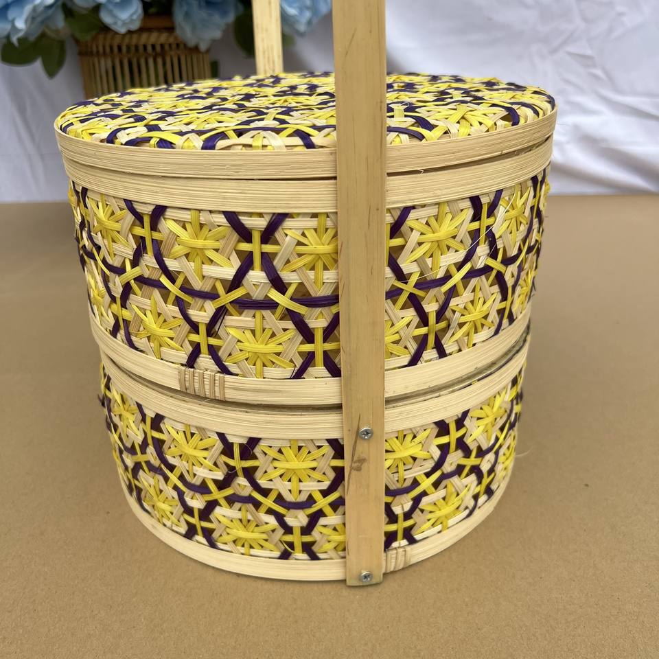Multi-Function Handle Two-Tier Storage Basket Home Decoration Bamboo Material