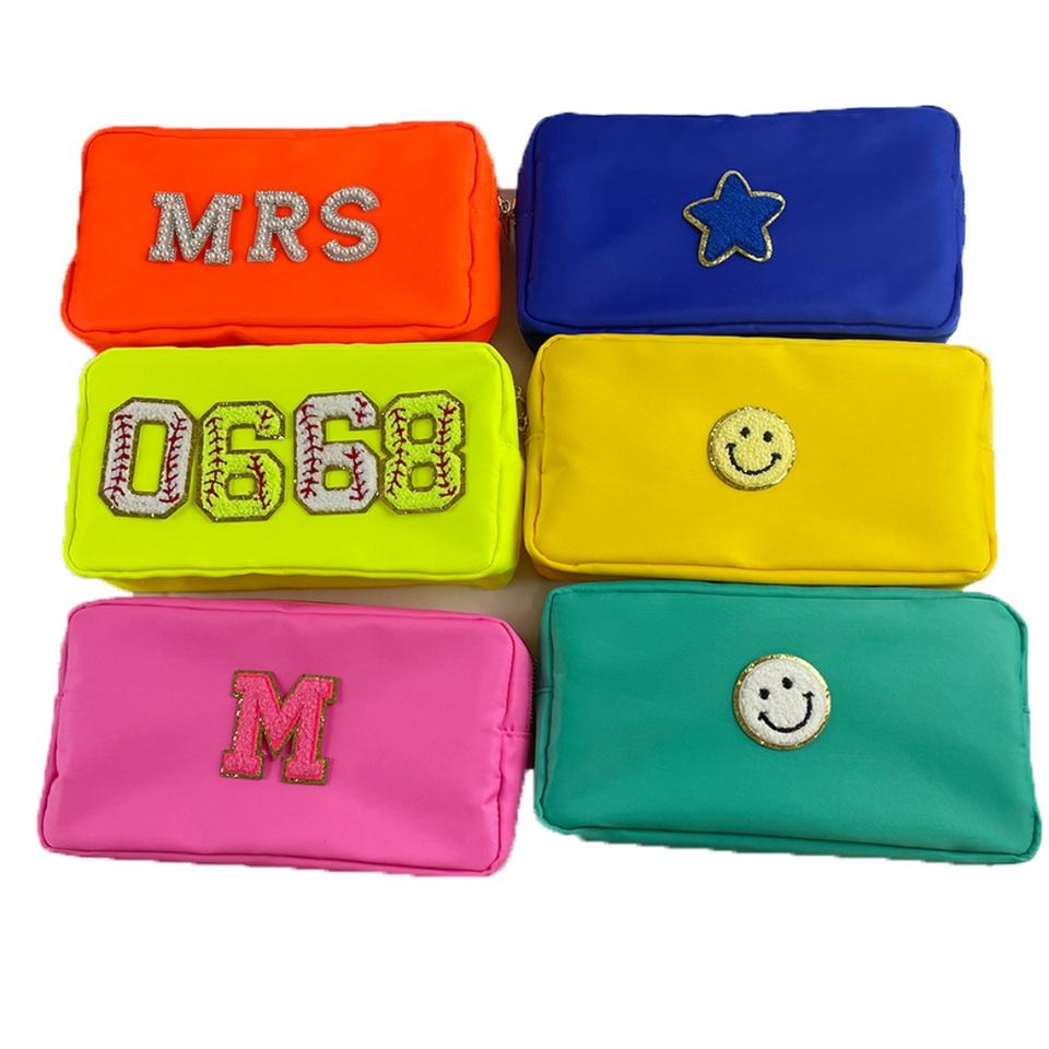 Multi Function Nylon Zipper Letter Patch Custom Cosmetic Make up Pouch case Travel Capability Toiletry Makeup Bag Cosmetic
