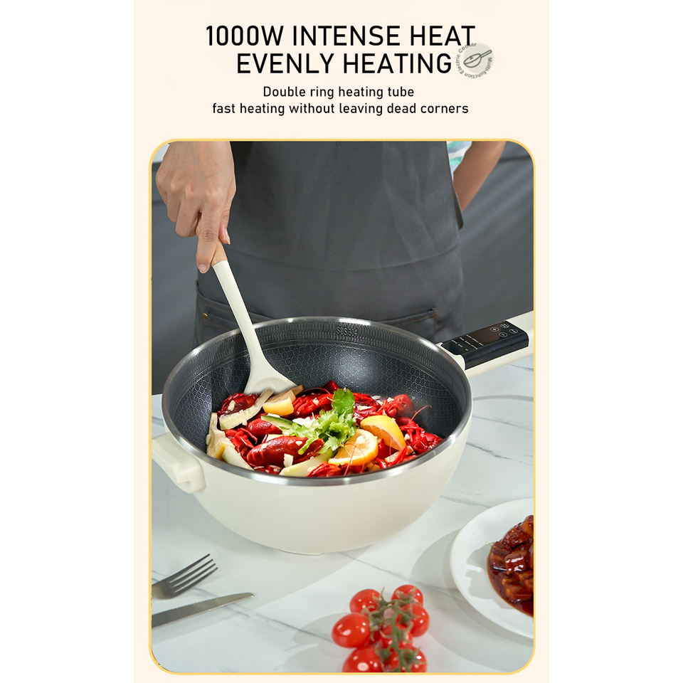 Multi-Functional 4L Electric Frying Pan with Tempered Glass Lid for Household Hotels RV Outdoor Use US Plug