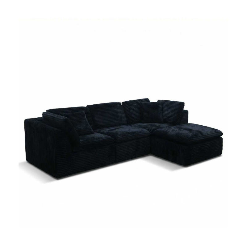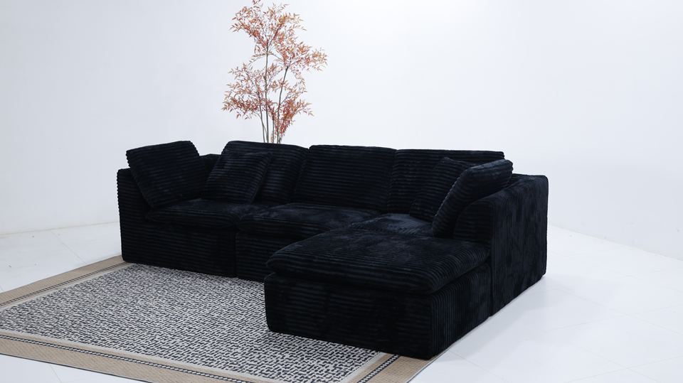 Multi-Functional Convertible Modular Sofa, Black Corduroy Compressed Couch with Customized Legs for Home & Office