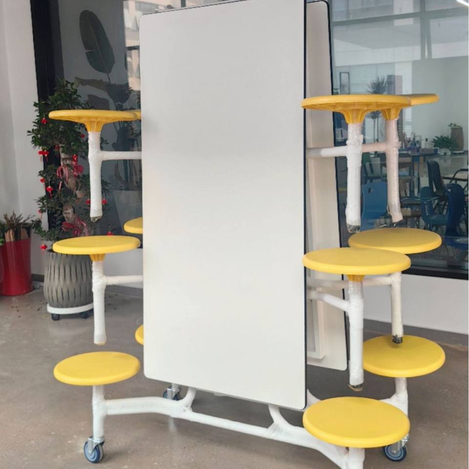 Multi-Functional Foldable Dining Table Rectangle 12 Seat Yellow For Children Dining Room Combination Design