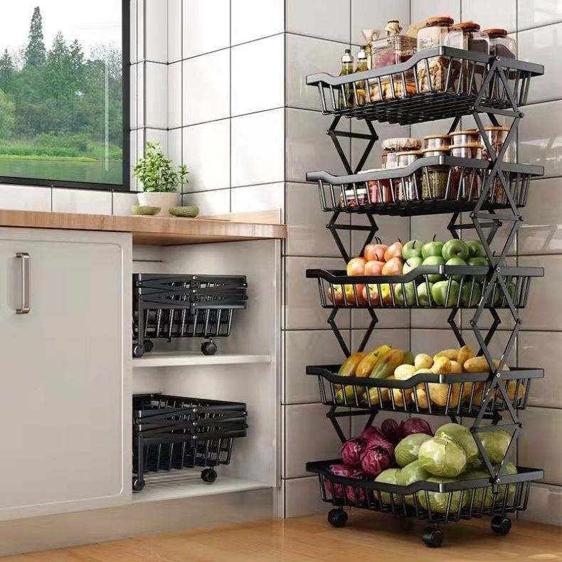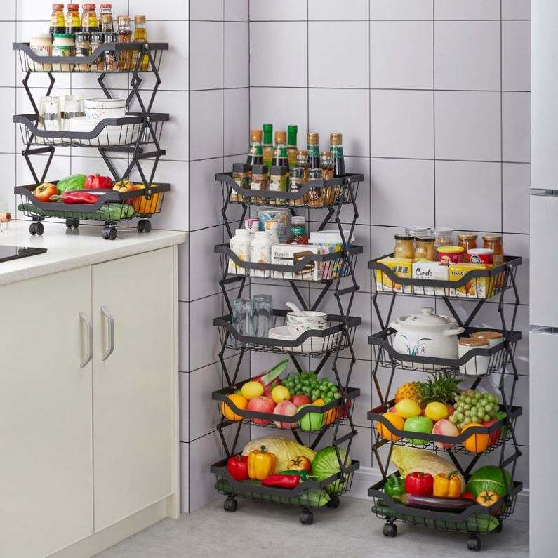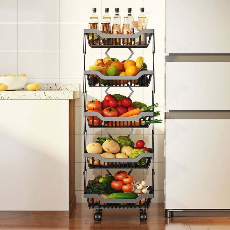 Multi Functional Foldable Metal Multi Layer Storage Rack Wheels Lockable Casters Space Saving Modern Design for Vegetable Fruit
