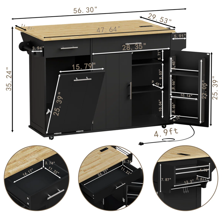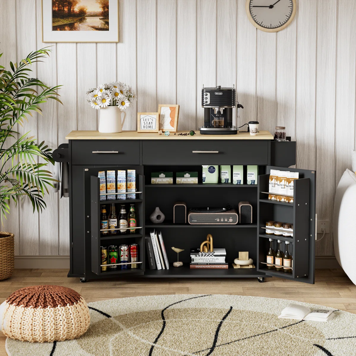 Multi-Functional Folding Wood Dining Table Set Storage Cabinet Wheels Kitchen Islands Carts for Kitchen Dining Room Furniture