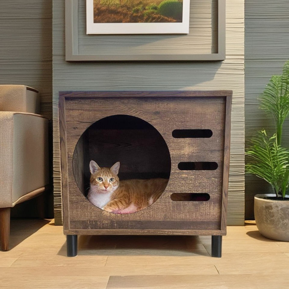 Multi-Functional Wood Cat House with Privacy Litter Box Storage Built-In Scratcher for Cats and Humans