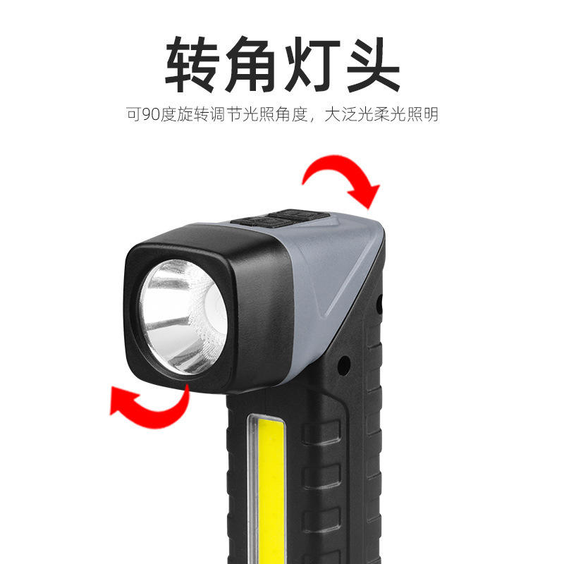 Multi Functional High Intensity Flashlight Led Rechargeable Portable Work Light Car Repair With Magnet Rotatable Corner Light