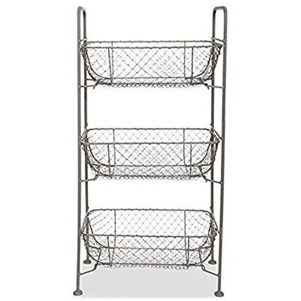 Multi Functional Iron Wire Basket With Handle Round Shape 3 Tier for Tabletop Kitchen Fruits Vegetables Storage Basket