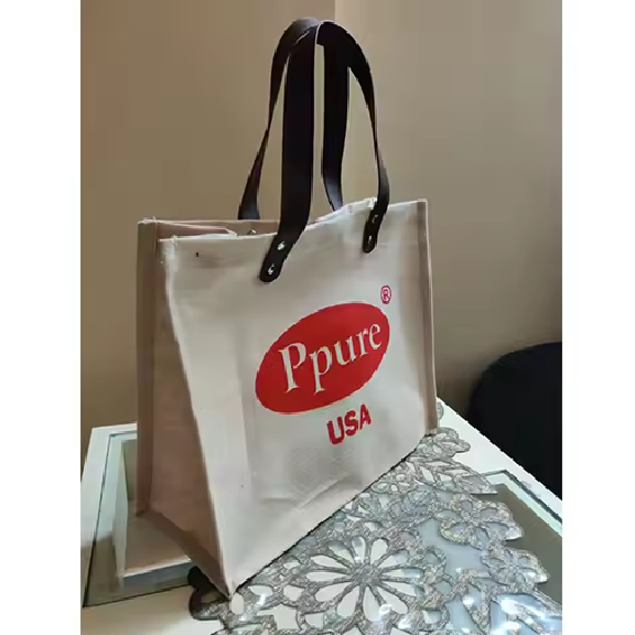 Multi Functional Juco Canvas and Leather Trim Bag Customizable Logo Tote with Cotton Handle Foldable Structure Durable Stylish
