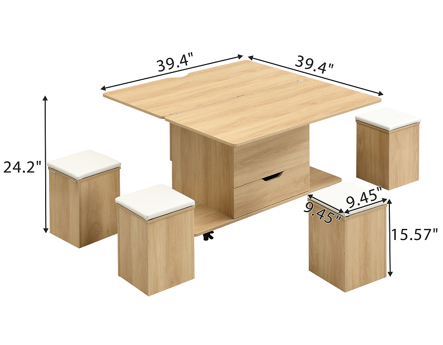 Multi-Functional Lift-Top Coffee Table with Hidden Storage Stools and 4 Casters Modern Living Room Furniture Eco-Friendly