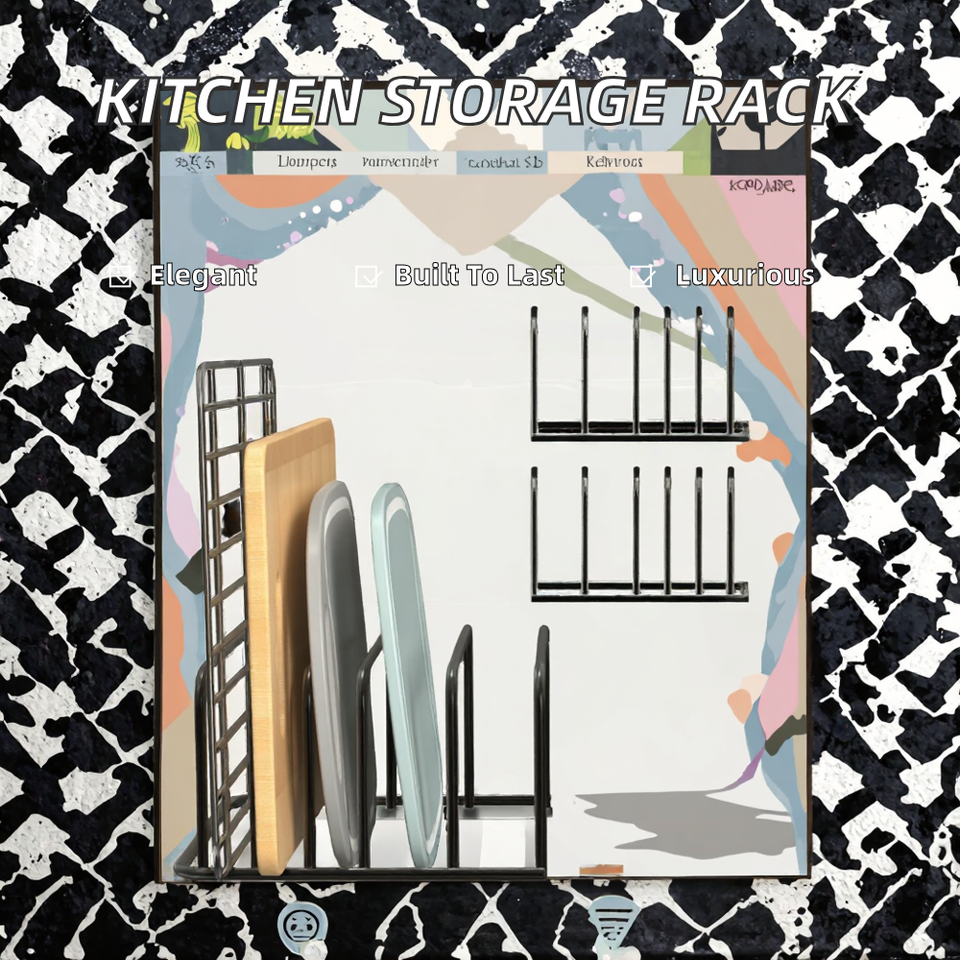 Multi-Functional Modern Sustainable Carbon Steel Standing Double Countertop Kitchen Storage Rack Non-Punching Pot Lid