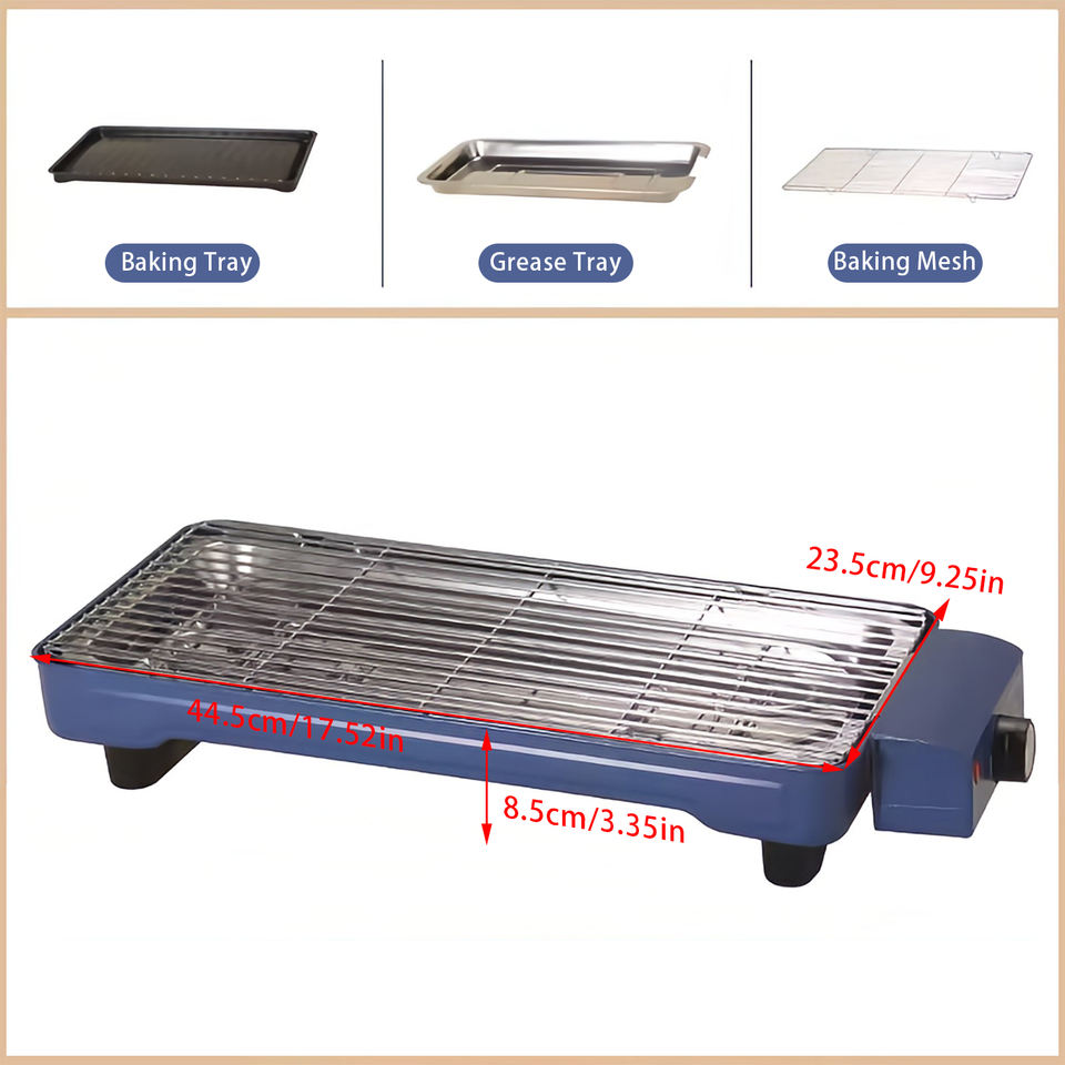 Dismountable Oil Collector, Non-Stick Cooking Surface, Smokeless, Temperature Control