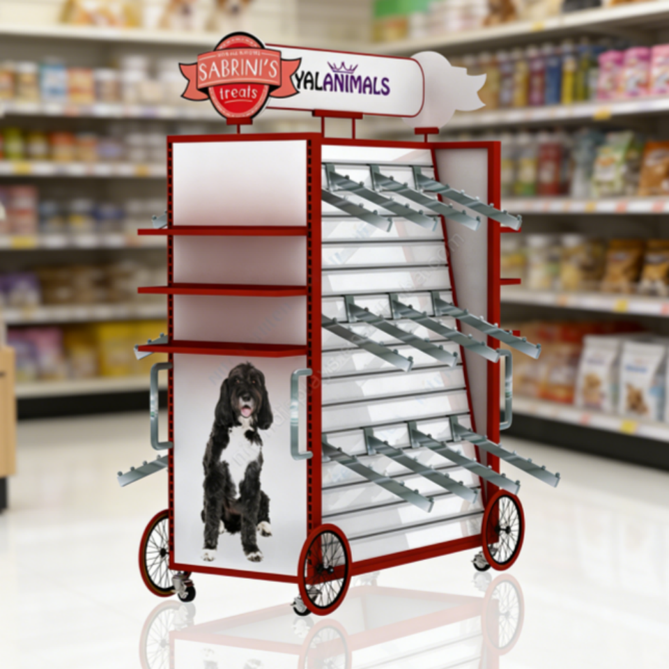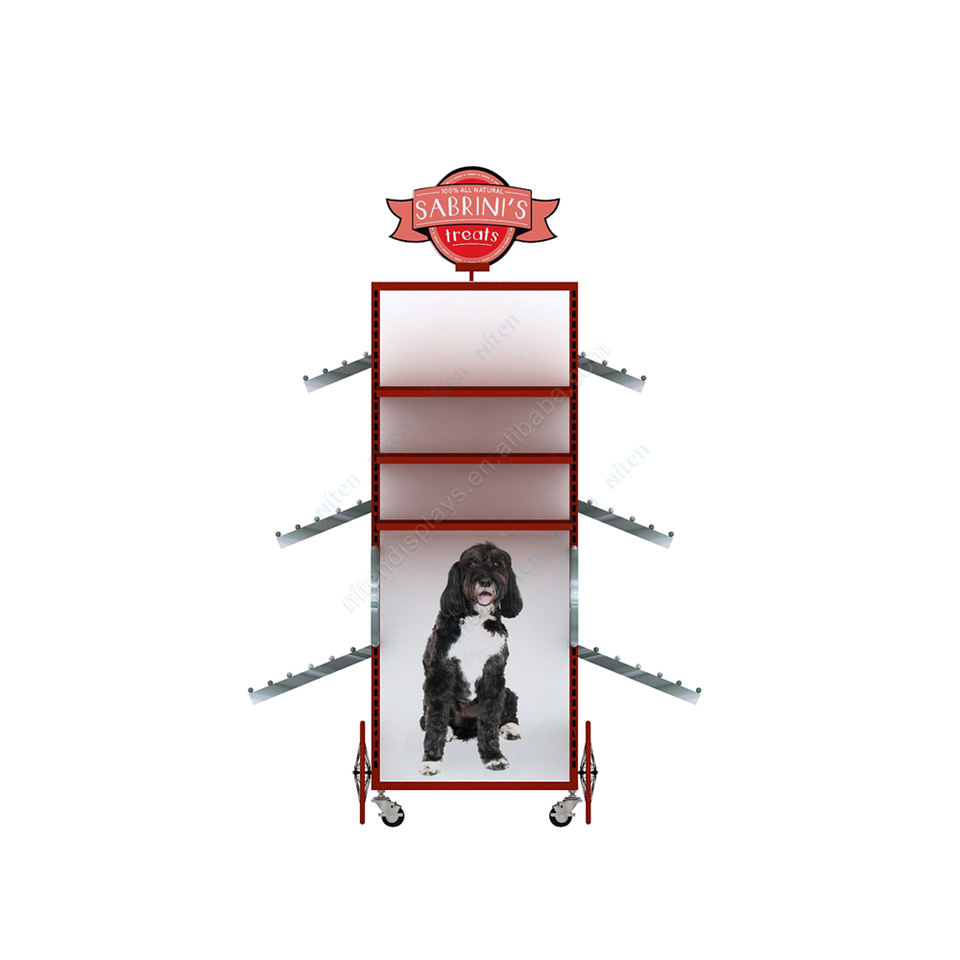 Multi-Functional Pet Accessories Display Rack with Hooks & Casters