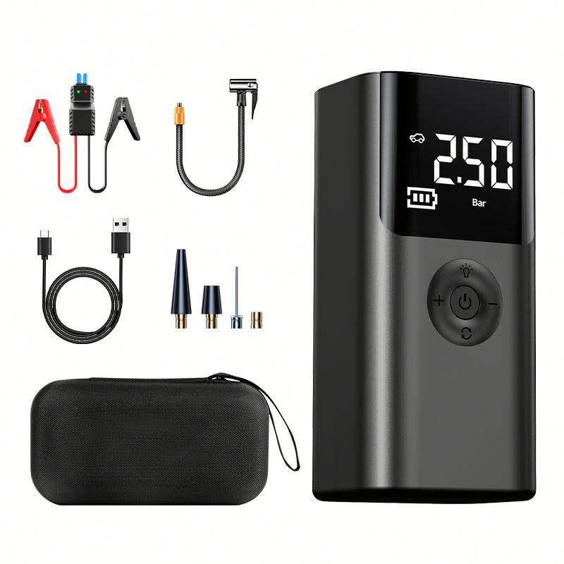 Multi-Functional Portable Jump Starter 10000mAh Battery LED Light Jump Box Air Compressor Tire Inflator for Motorcycles Trucks
