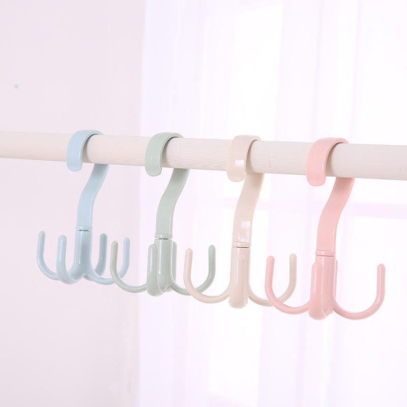 Multi Functional Rotating Four Claw Hook For Bags Scarves Wardrobe Storage Light Pink Light Blue Light Green Beige PS Material