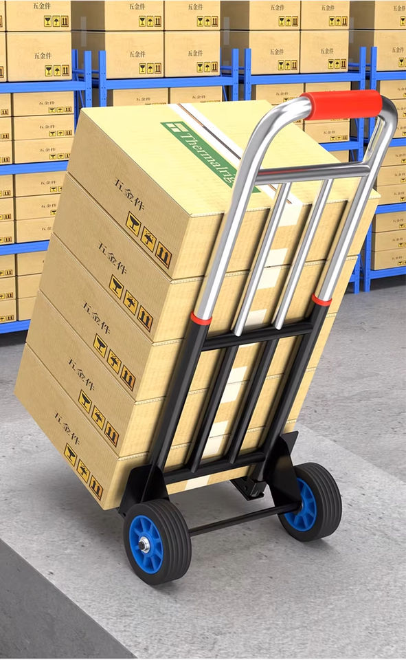 Multi-Functional Stainless Steel Iron 2-Wheel Dolly Platform Cart Heavy Duty Backpack Cart Storage Office Use Tools Black OEM