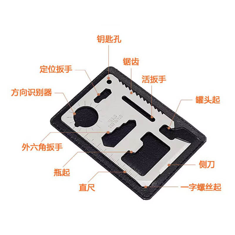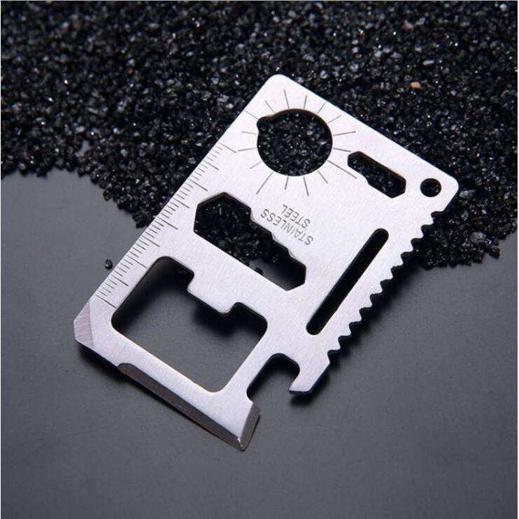 Multi Functional Stainless Steel Survival Tool Card With Serrated Edge And Pouch For Outdoor Camping And Wilderness Use