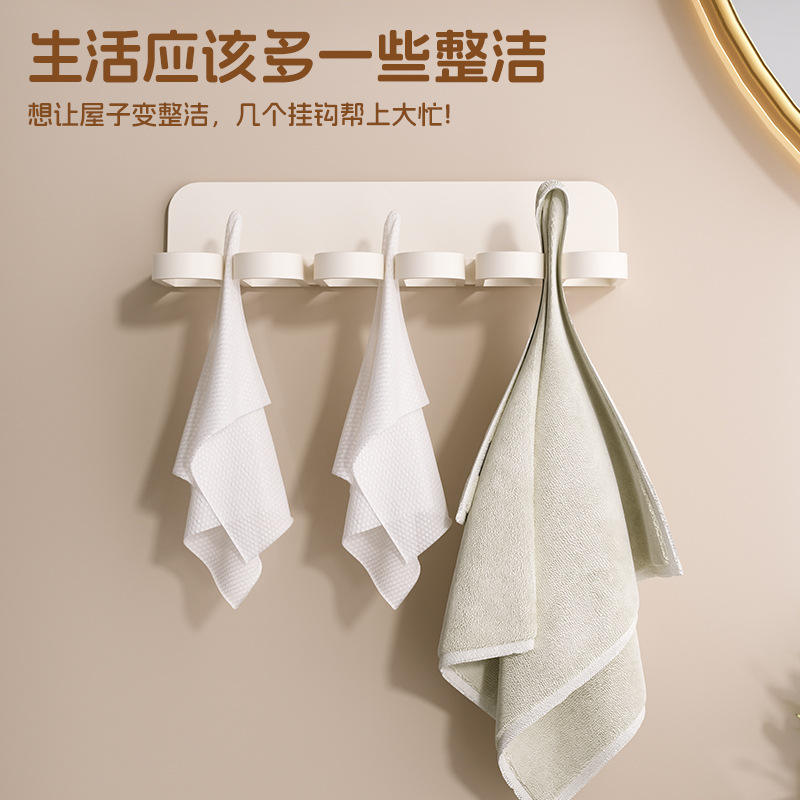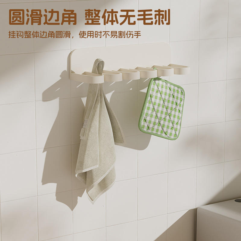 Multi Functional Towel Rack 6 Hooks Wall Mounted No Drilling ABS Material Bathroom Kitchen Use