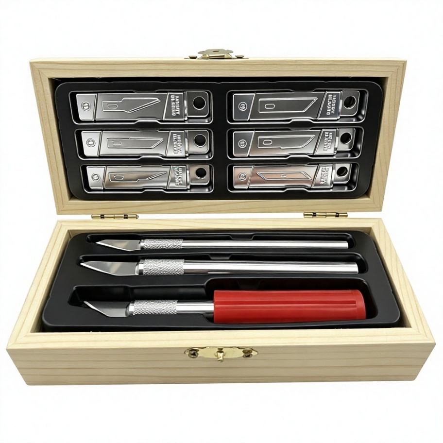 Wooden Box 36pcs Hobby Knife Set