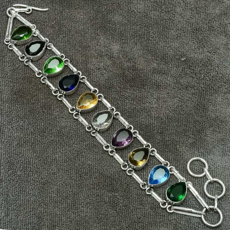 Multi Gemstone 925 Sterling Silver Bracelet Handmade Jewelry Natural Stone Womens Bracelet Fashion Bracelet Gift