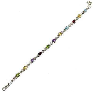 Multi Gemstone Bracelet Solid 925 Sterling Silver Amethyst Garnet Citrine Natural Gemstone Bracelet 925 Sterling Silver