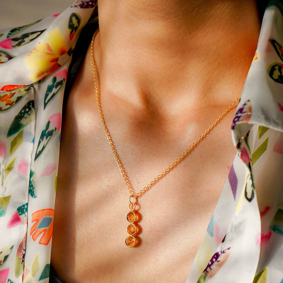 Multi-Gemstone Gold Plated Pendant with Faceted Bezel Citrine Anti Tarnish Necklace Jewelry for Engagement Wholesale Bulk Supply