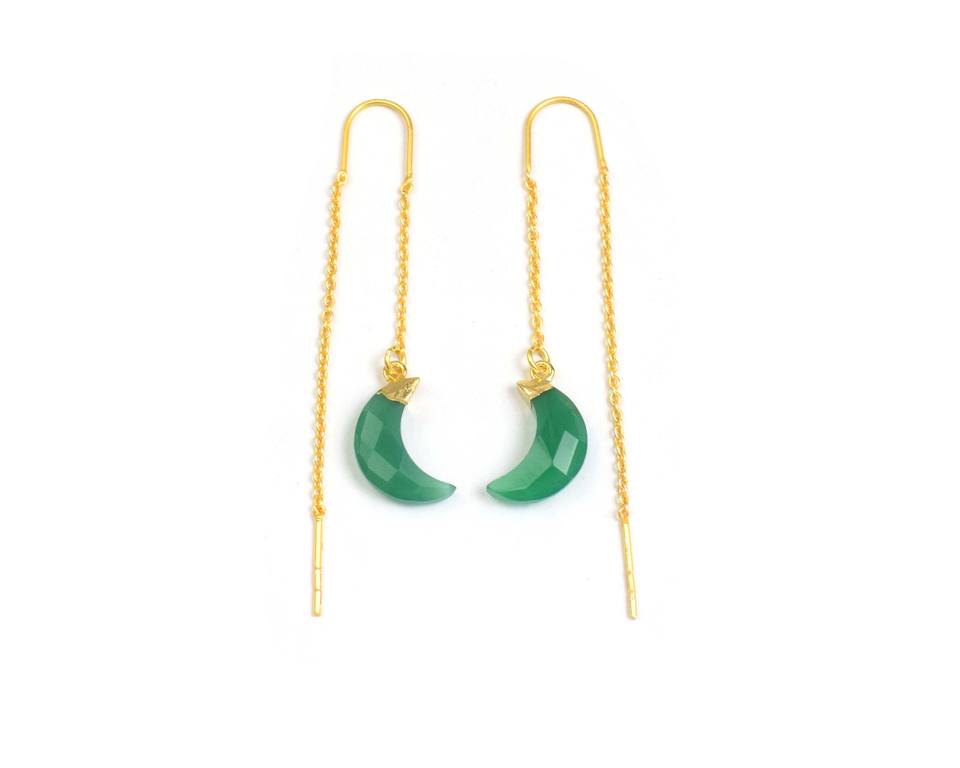 Material:Multi Gemstone Moon Shape Gold Plated Hoop Earring