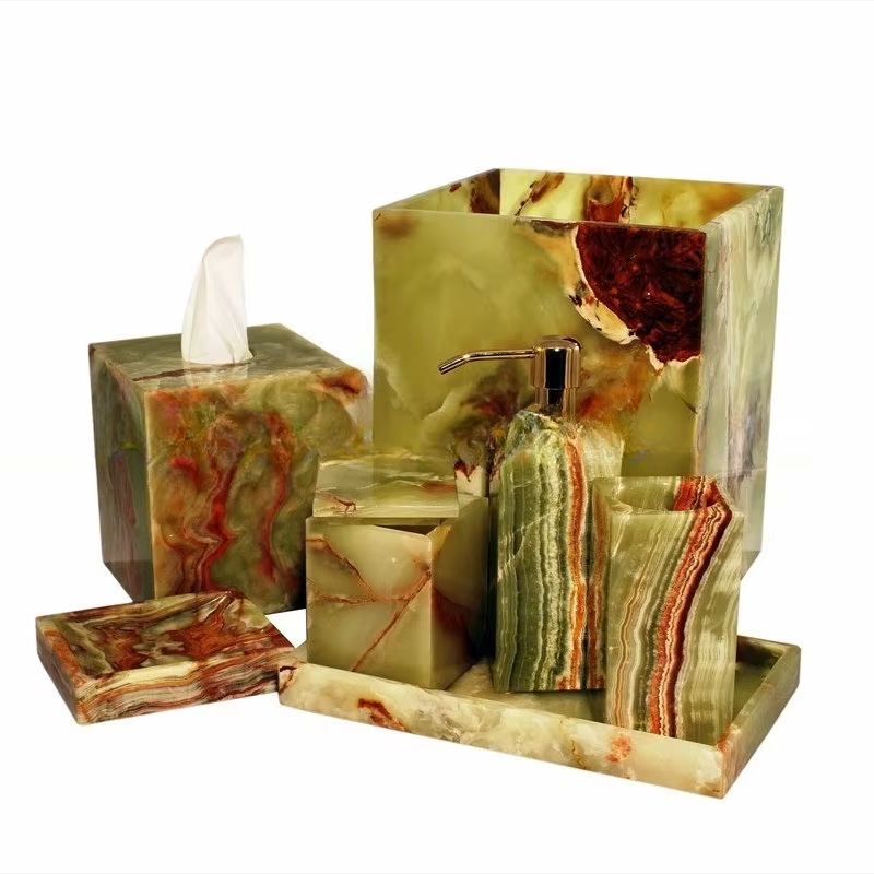 Multi Green Onyx Bathroom Accessories Set Luxury Natural Stone Soap Dispenser Toothbrush Holder Decor