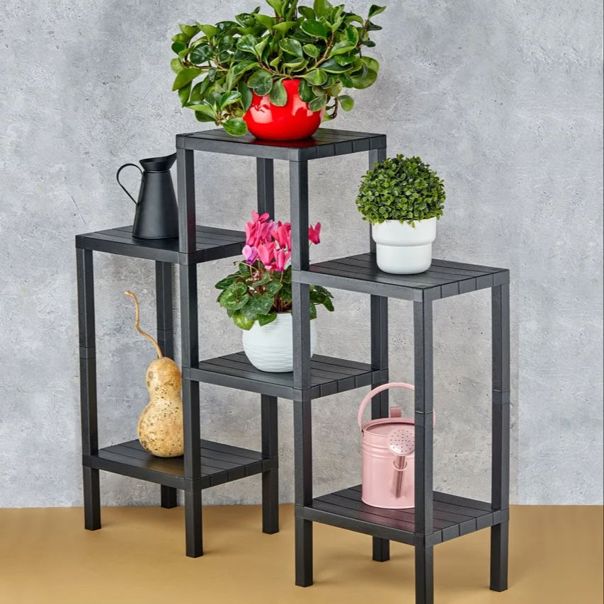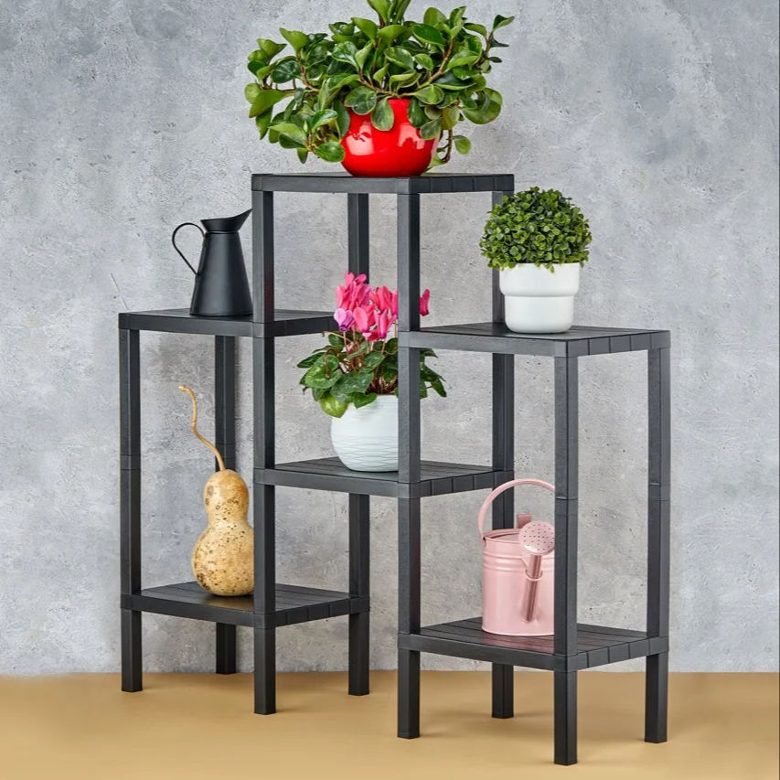 Multi-Layer Black Plastic Folding Shelves Decorative Shelves Units 6-Tier Display Shelving Units Storage Collapsible Shelf