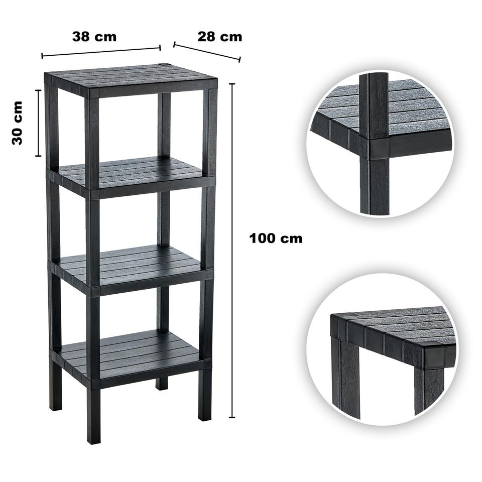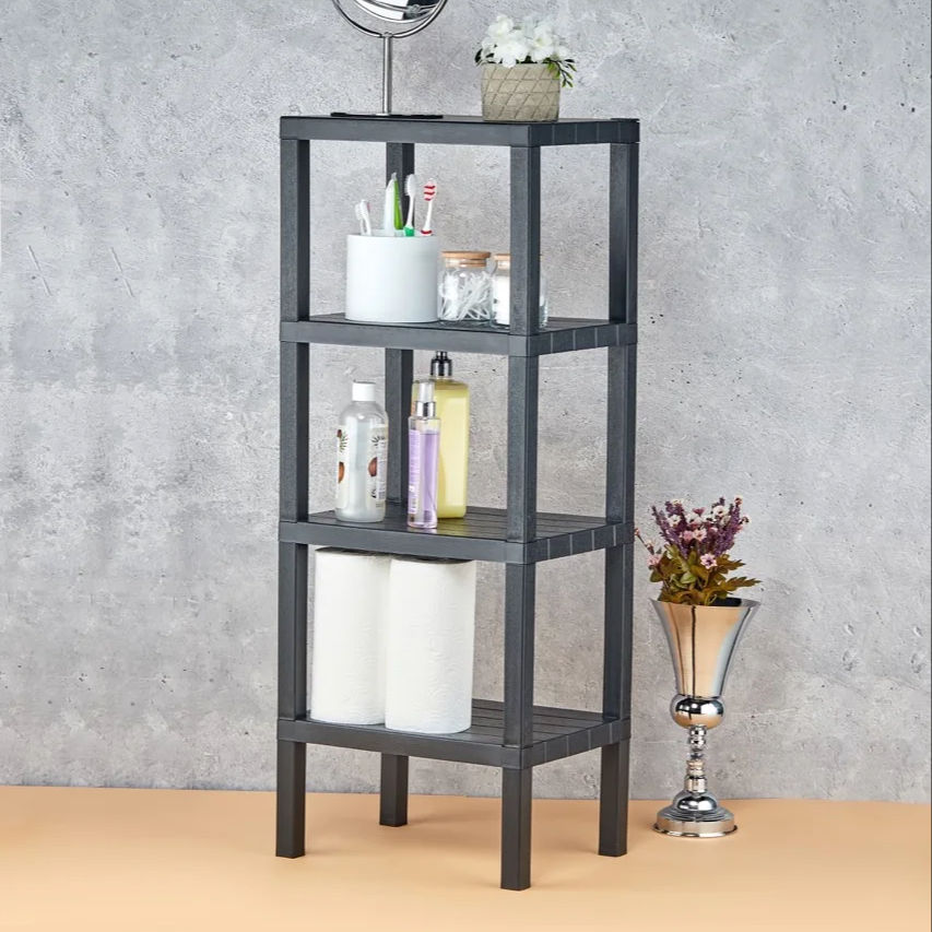 4-Tier Modern Decorative Collapsible Storage Shelving Units Multi-Layer Black Plastic Folding Shelves for Household Food Use