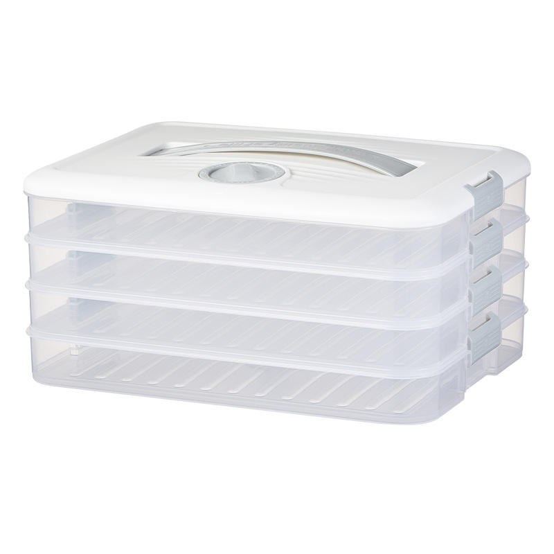 Multi Layer Dumpling Box With Timer Function For Home Kitchen Freezer Storage Rectangle Clip On Lid 40-60 Pcs Food Container