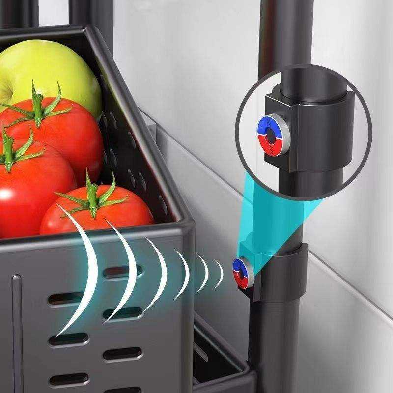 Multi Layer Rotatable Kitchen Storage Rack With Wheels for Home Floor Standing Fruit Vegetable Basket Storage