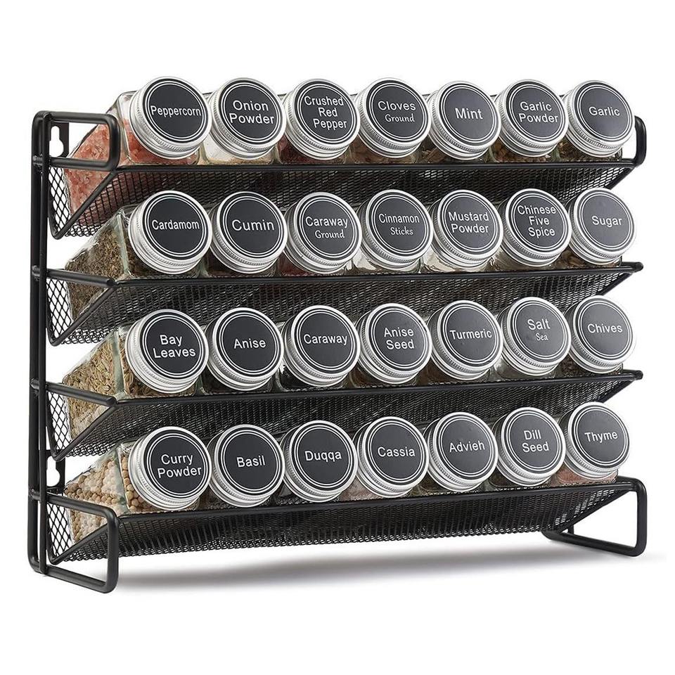 Multi Layer Spice Rack 4 Tier Black Metal Kitchen Countertop Storage Organizer For Jars And Bottles